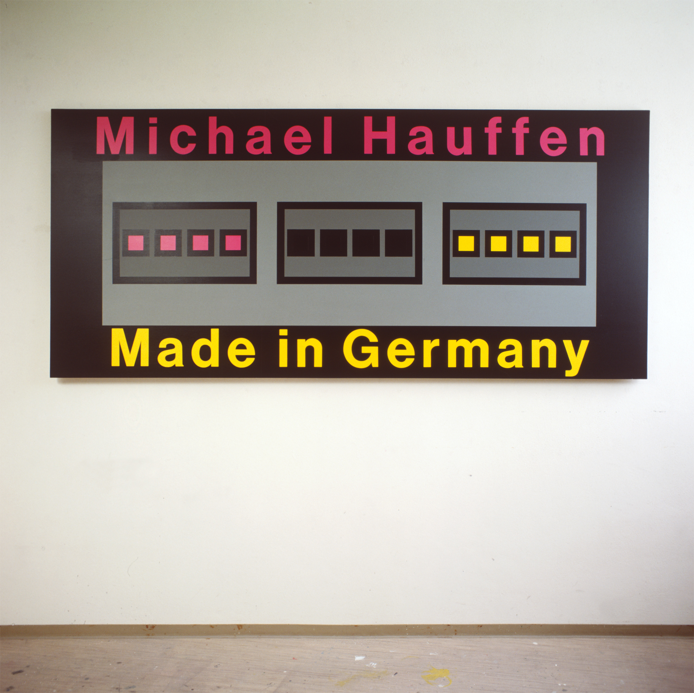 Den Künstlernamen als Logo präsentierend, ein bestimmtes simples und leicht wiedererkennbares Bilddesign verwendend, unternahm eine Serie von Bildern den provokativen Versuch, das Kunstsystem als selbstbezügliches Werbemedium zu präsentieren, in dem einfache Botschaften Aufmerksamkeit erregen und das allgemeine Bedürfnis nach schnell konsumierbaren Informationseinheiten im Sinne einer profitablen Marke befriedigen. Der Warencharakter des "Kunstwerks" wechselte von der Form zum Inhalt, auch um im Sinne der Avantgarde die Frage aufzuwerfen, ob ein solcher provokativer Wechsel die Form zu sprengen oder aufzuheben vermag.